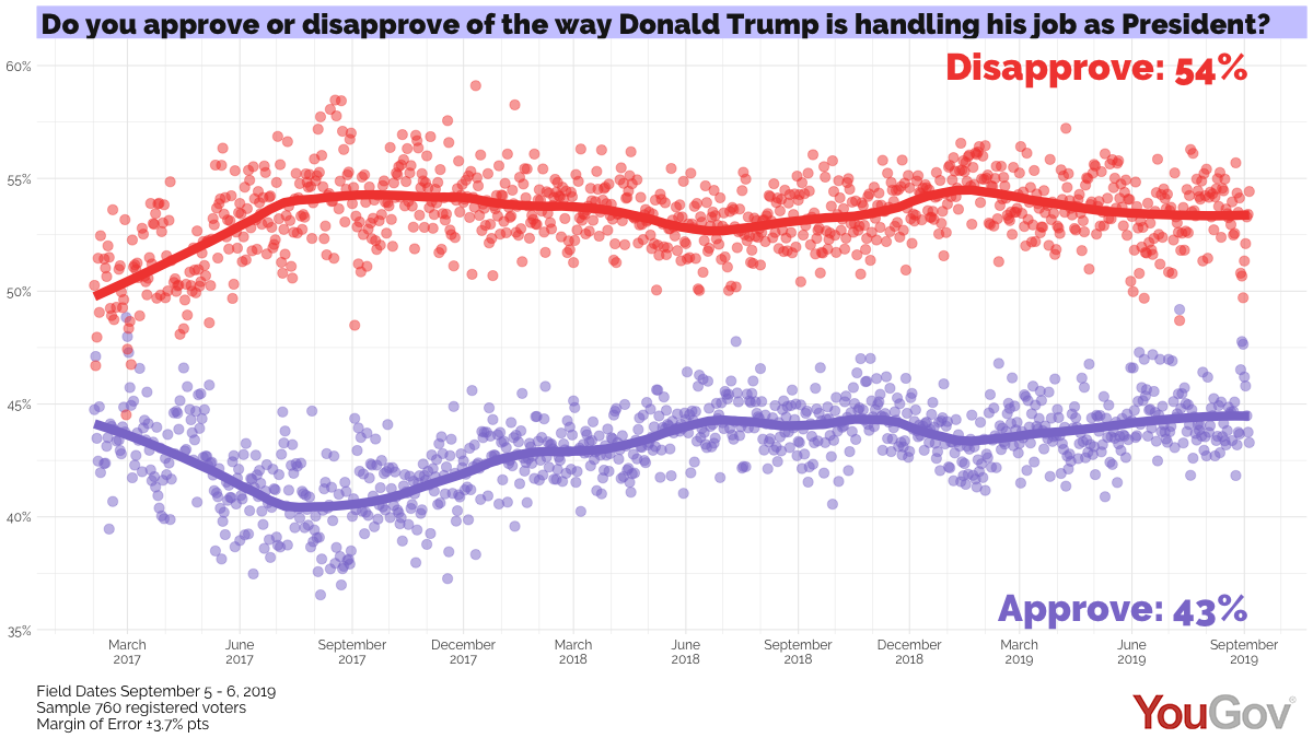 President donald trump's approval rating has slowly climbed with less than three months to go until the 2020 presidential election, according to polling data. Trump | pelosi | mcconnell | schumer. One of the defining traits of president donald trump's time in office has been the consistency of his poll numbers. Right direction 24, wrong track 64: An approval rating is a percentage determined by polling which indicates the percentage of respondents to an opinion poll who approve of a particular person or program. State polling averages are adjusted based on national trends, which means candidates' averages can shift even in the absence of fresh state polls. Trump's aides would probably love. Public opinion polling since 2003. All president trump job approval polling data. Fivethirtyeight is tracking donald trump's approval ratings throughout his presidency. Donald trump's presidential job approval ratings Trump (@realdonaldtrump) september 18, 2020. The survey, released tuesday, showed a gain of 4 percentage points in trump's approval since early january.